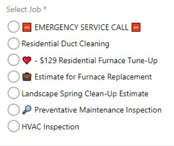 Build a list of services that your customer can choose, or give them a generic option like "technician visit" if they don't quite know what they need.